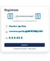 Escribe tu nombre, correo institucional (@serviciosq.com) y una contraseña segura. Luego haz clic en “Registrarte”.