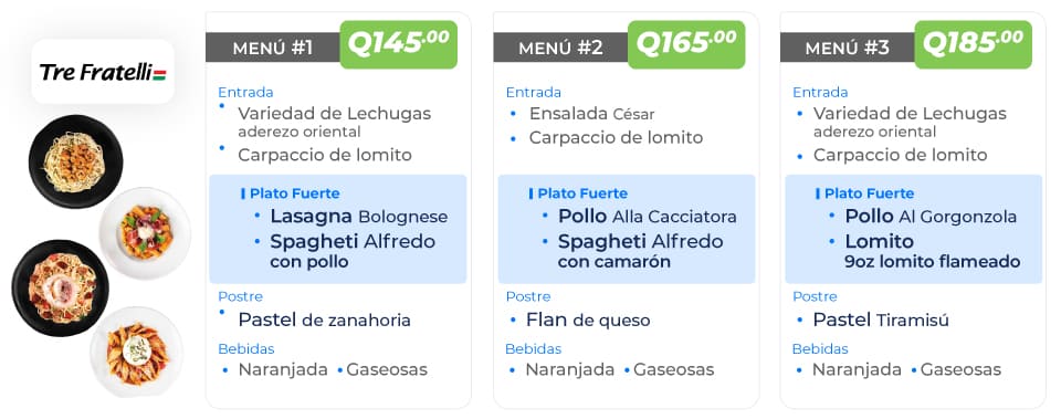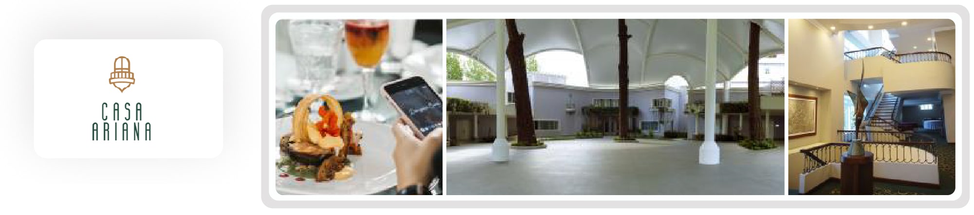 Cada menú cuenta con una entrada, plato fuerte, acompañamiento y postre. Casa Ariana se distingue por presentar platos de comida que elevan el nivel del evento manteniendo siempre la modestia que se requiere.